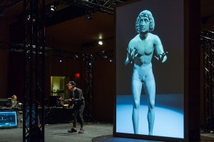 An actor gives life to a digital recreation of Tullio Lombardo’s Adam sculpture at the Metropolitan Museum of Art. (Photo by Thomas B. Ling)