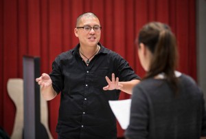 Eric Ting directing “The World of Extreme Happiness” at the Goodman Theatre. (Photo by Liz Lauren)