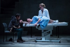 “Sons of the Prophet” by Stephen Karam, at Theater J in Washington, D.C., through Dec. 20. Pictured: Tony Strowd Hamilton, Chris Dinolfo, and Vanessa Bradchulis.