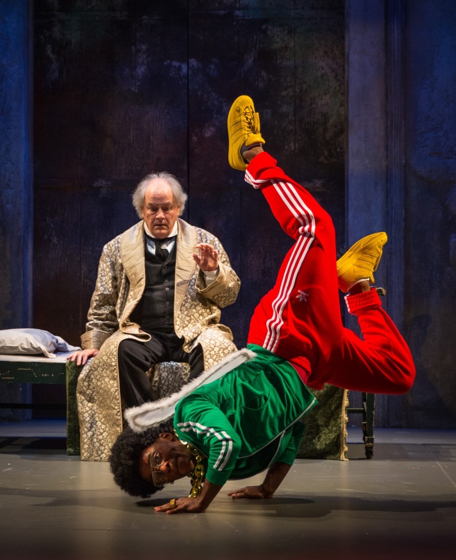 “Twist Your Dickens, or Scrooge You!” by Peter Gwinn and Bobby Mort, a production of the Second City at the Goodman Theatre in Chicago, through Dec. 27. Pictured: Francis Guinan and Travis Turner. (Photo by Liz Lauren)