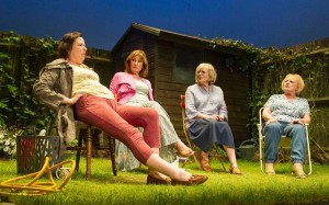 Linda Bassett, Deborah Findlay, Kika Markham, and June Watson in “Escaped Alone” at the Royal Court Theatre. (Photo by Alistair Muir)