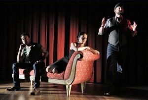 Adam Poss, Rusty Sneary, and Vanessa Severo in “Lot’s Wife” at Kansas City Rep. (Photo by Cory Weaver)