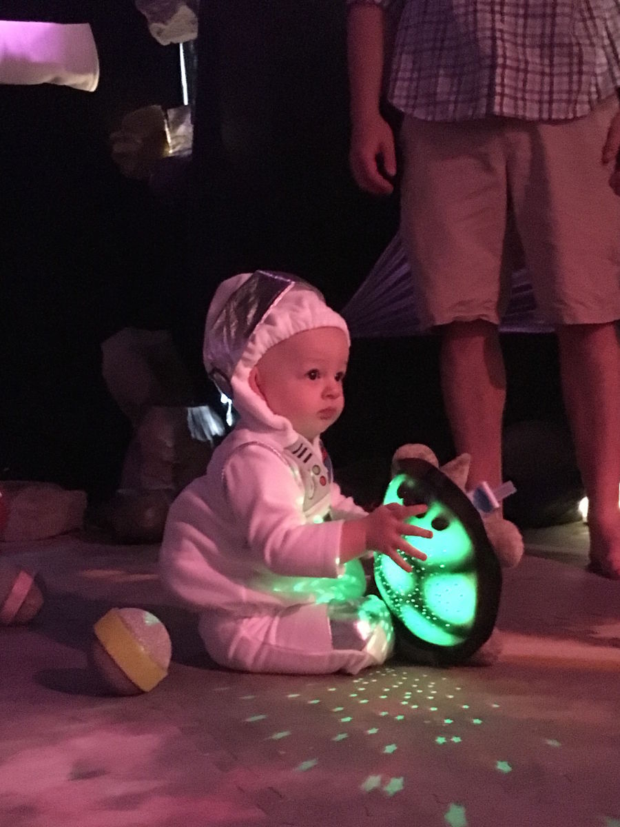 An audience member at “Babies in Space” at the Alliance Theatre.