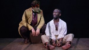 Rowan Vickers and Phillip James Brannon in “Nat Turner in Jerusalem” at New York Theatre Workshop. (Photo by Joan Marcus)