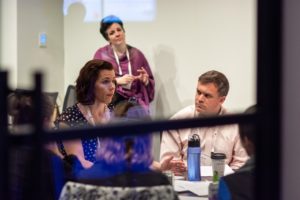 Claire Warden, intimacy director, with Maria Manuela Goyanes of Woolly Mammoth and Ryan Rilette of Roundhouse Theatre. (Photo by Ryan Bourque for Theatre Communications Group)