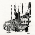 For a few performances, I got a peek (and a listen) at the backstage action of Jez Butterworth’s sprawling, three-and-a-half hour drama about a farming family in Northern Ireland preparing for the annual harvest in the summer of 1981, as the “the Troubles” are coming to a head. In the shadows with me was the talented artist Michael Arthur, as we observed the Tony-nominated play from wings, the dressing rooms, the green room, even the animals’ quarters. I can attest that there is as much excitement backstage as there is onstage, possibly even more. How could there not be, with a cast of 21, plus a few geese, bunnies, and adorable human babies?