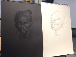 A live model portrait drawn by Victoria at Art League Houston as part fo the Willa Kim Scholarship.