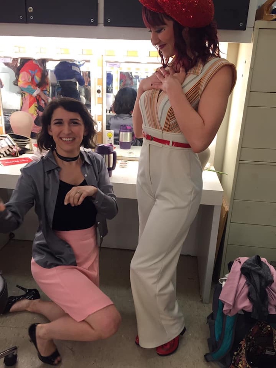 Victoria Nicolette Gist putting the finishing touches on costumes for “The Fairytale Lives of Russian Girls” with Rachel Cendrick and cast backstage.