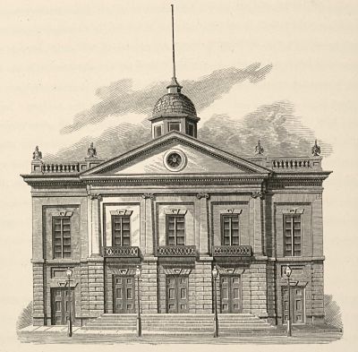 Engraving of the Lafayette Theatre, on the west side of Laurens Street (today called West Broadway), between Canal Street and Grand Street, in New York City.