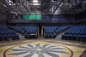The University of Arizona’s empty theatre with the floor from the canceled production of “Light in the Piazza” still installed.