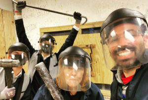 From left, Ben Senneff (with sledgehammer), Victoria Bussert and Matthew Webb. (Photo by Matthew Webb.)