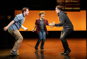 Sam Primack (Evan), Gaten Matarazzo (Jared), and Noah Kieserman (Connor) in ‘Dear Evan Hansen’. (Photo by Matthew Murphy.)