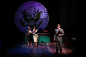 Thomas Prior, Kelley Peters, and Chaney Moore in “Roe” at Stages. (Photo by Melissa Taylor)