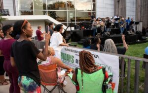 Crowds gather on the Black Ensemble Theater lawn for the organization’s summer series, “Fridays on the Green.” (Courtesy of Black Ensemble Theater)