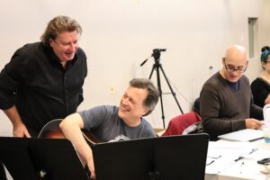 Mark Clements, Gordon Gano, and Eric Simonson in a workshop of Milwaukee Repertory Theater’s production of “Run Bambi Run.”