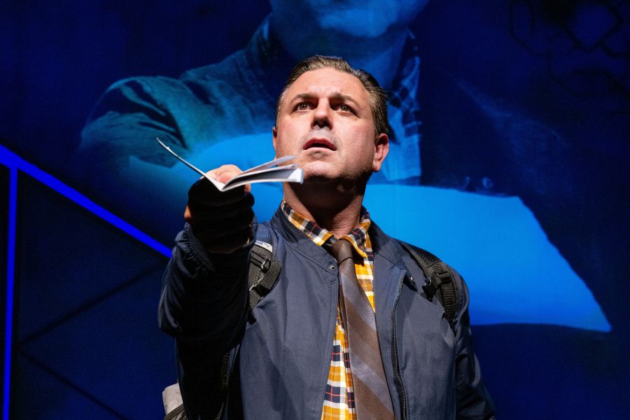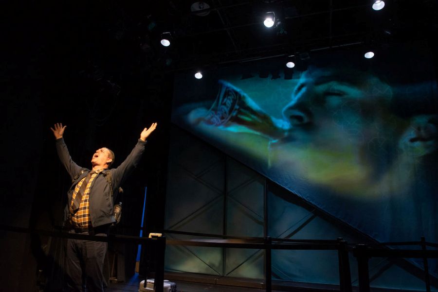 (At the front of the stage now looking out at the audience. Perhaps he holds his passport out like it’s a begging bowl.)