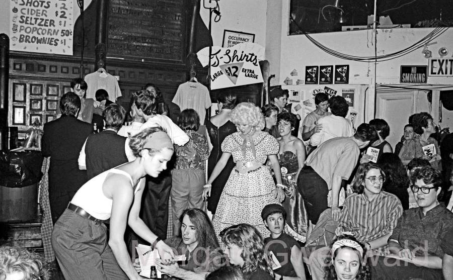 The inaugural Women’s One World Festival, an international festival dedicated to lesbian and women’s experimental theatre, took place this month in Manhattan’s East Village. Finding inspiration in the multidisciplinary arts festivals of Europe, Lois Weaver, Peggy Shaw, Pamela Camhe, and Jordy Mark organized Women’s One World through grassroots fundraising and organizing. The festival’s first iteration was hosted by the All-Craft Center on Saint Mark’s Place, which could accommodate 400 seats. Women’s One World lasted 11 days and included 36 shows from eight countries. Following two years of the festival, Women’s One World put down roots in a permanent space, evolving into the iconic, collectively run, women- and trans-centered WOW Café Theater.