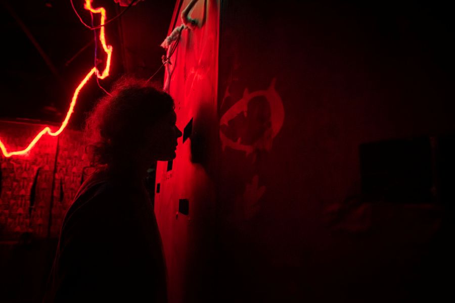 This year’s production consists of six rooms, all with varying peep holes, puppetry types, and stories. Some are monstrous, others unsettling in the way that the video in The Ring causes unease just in stringing together a sequence of unnerving images. It’s a massive lift, Saxe says, for a three-person stage management team, two scenic designers, two lighting designers, and an environmental dramaturg. This year, for the first time, the production features guest directors, Felix Mayes and Corey Smith, both veterans of the House of Exquisite Corpse world.