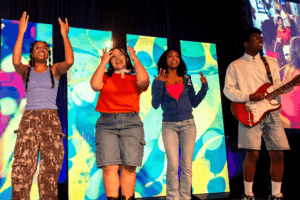Said Jacqueline Stone, artistic contributor and theatre consultant to MTH On Stage, “The team has been really amazing at being flexible with kinds of scripts, who wants to perform and produce them, and the team is really involved in figuring out different versions of each show that are unique to everyone’s needs.” Plus, the MTH On Stage team creates their very own “classroom adventures” and educational materials that they can collaborate with individual theatres to adapt. Above all, this team wants to play.