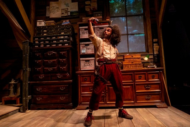 At its core, the play follows a man trying to remember a song, spending 90 minutes sifting through memory-triggering objects to unlock it. Along the way, he extracts memories from his body and uploads them into a kind of 1980s, Back to the Future-inspired machine, complete with textured and localized boot-up/uploading sounds, and a final, satisfying explosion. What we discover is that to remember the song, he must confront the grief of losing the person who taught it to him.