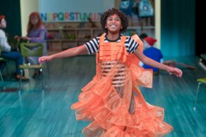 Mathias Brinda and company in Children’s Theatre Company’s world premiere of “Morris Micklewhite and the Tangerine Dress” by juliany taveras. (Photo by Glen Stubbe)