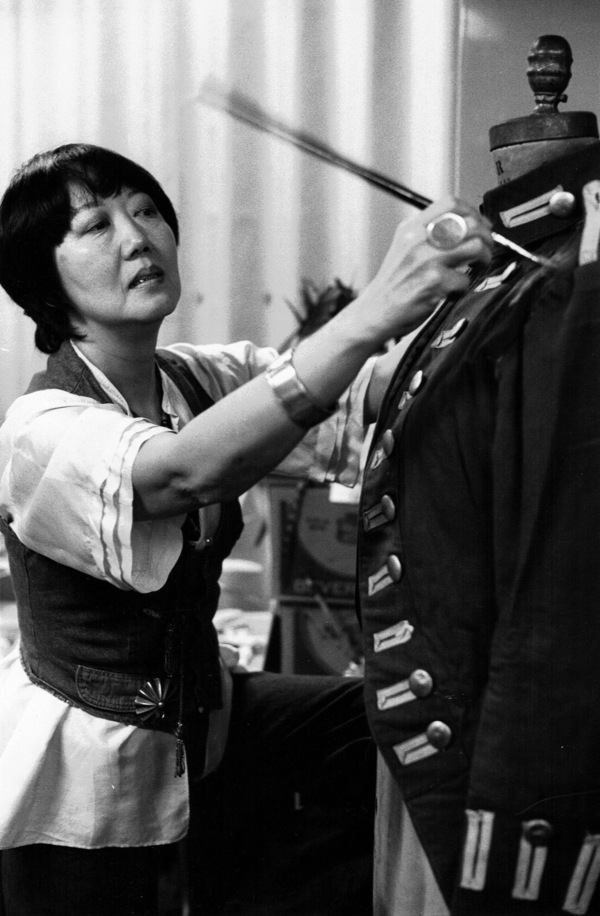 Willa Kim working on painting a jacket. (Courtesy of the Estate of Willa Kim)
